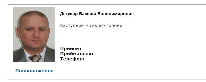 Однако, как выяснилось сегодня, мэр не подписал распоряжение о назначении Валерия Декусара на должность. Так, сегодня, 16 марта, заседала временная депутатская комиссия по изучению структуры и численности исполнительных органов. Перед комиссией отчитывались начальники отделов и управлений. Тогда и выяснилось, что Валерий Декусар официально занимает должность начальника организационно-контрольного отдела, Сейчас он находится в АТО, уходил на службу с этой должности и сейчас она официально остается за ним.