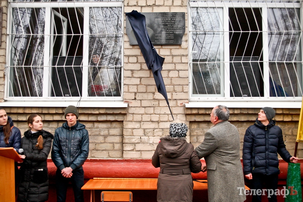 На відкритті меморіальної дошки однокласниця Андрія Покладова розповіла, що Андрій завжди й усім допомагав: як вчителям, так і своїм товаришам. І подякувала матері загиблого, за гарне виховання сина.