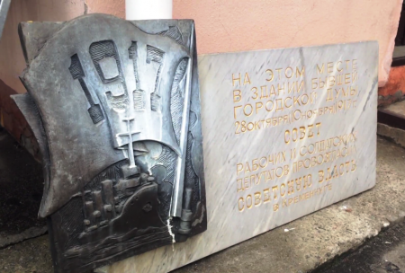 Работники предприятия сняли мраморную доску, которая гласила о провозглашении в Кременчуге советской власти