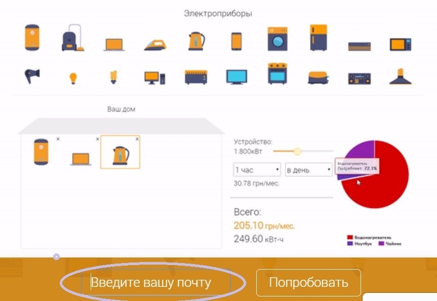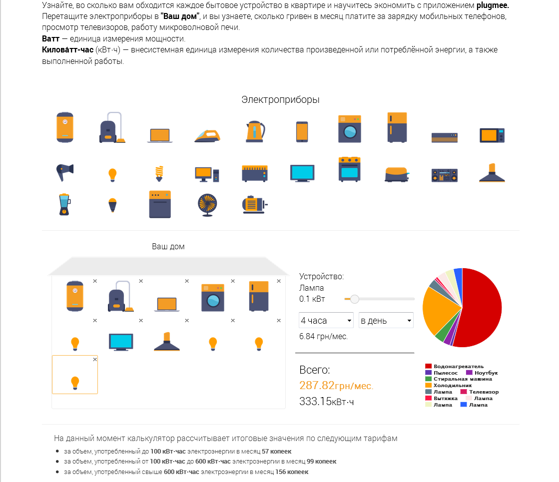 По мере добавления устройств, ваша сумма за электроэнергию будет расти. Также в конце вы сможете увидеть график, который покажет вам, какой прибор "жрет" свет больне всех.