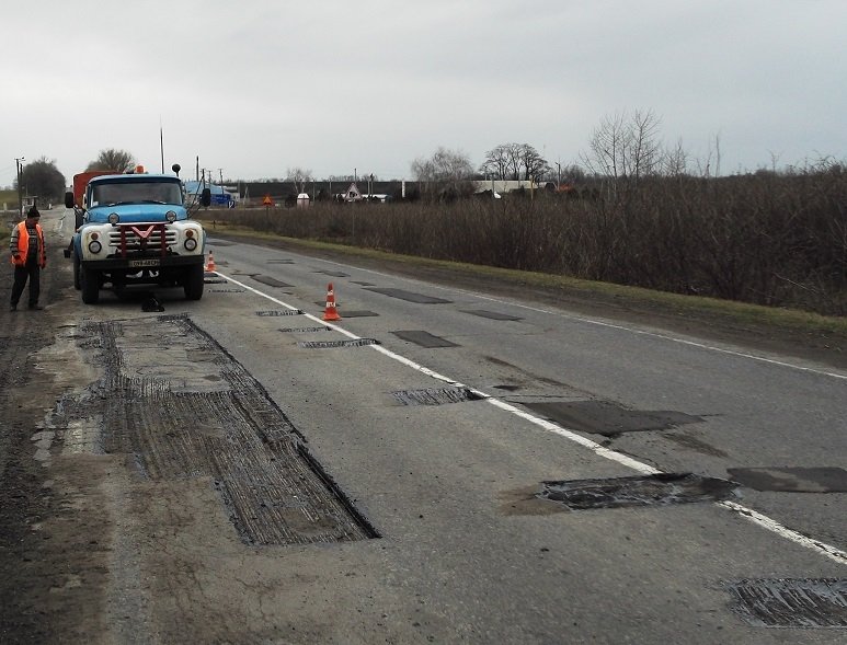 На ликвидации ямочности работает 7 бригад дорожных рабочих ГП “Полтавский облавтодор”. Работы проводятся с применением горячих асфальтобетонных смесей.