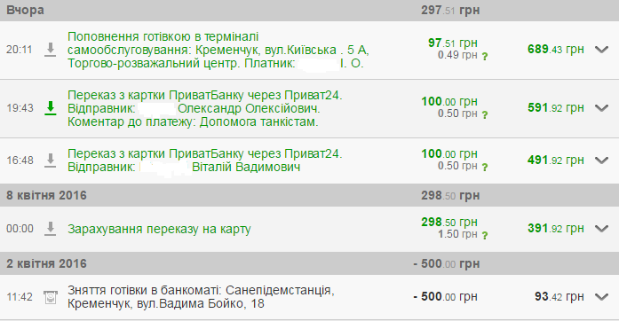 Протягом 1-13 квітня кременчужани перерахували на картку 596,01 грн.