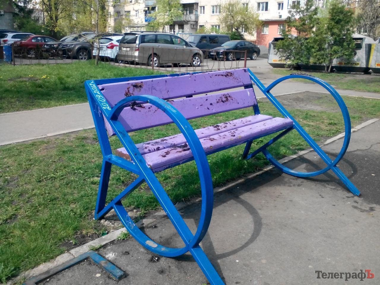 Что-то странное происходило во дворе дома №27-Б на ул. Пролетарской в центре Кременчуга – вся лавочка, а также территория вокруг вымазаны непонятной субстанцией, напоминающей отработанное машинное масло…