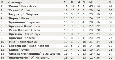 Турнірна таблиця