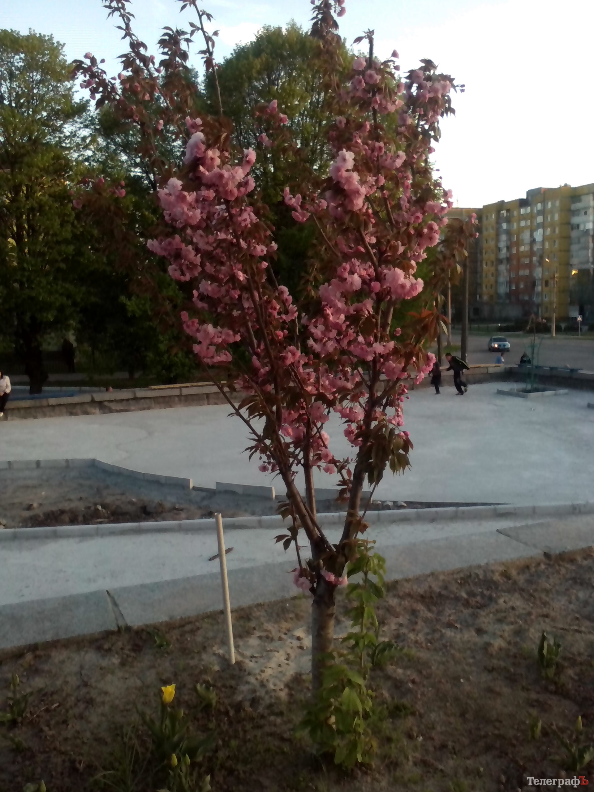 Деревце сакура стало в последнее время популярным в Кременчуге. Теперь японская вишня растет и на Молодежном - возле ДК "Нефтехимик".