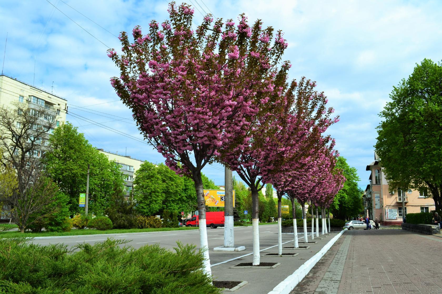 Десять сакур радуют глаз кременчужан возле дворца культуры.