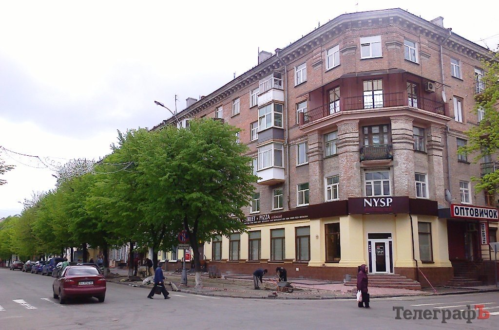 На ул. Соборной (бывш. Ленина) в районе перекрёстка с ул. Академика Маслова (бывш. Советская) в центре Кременчуга делают тротуар.
