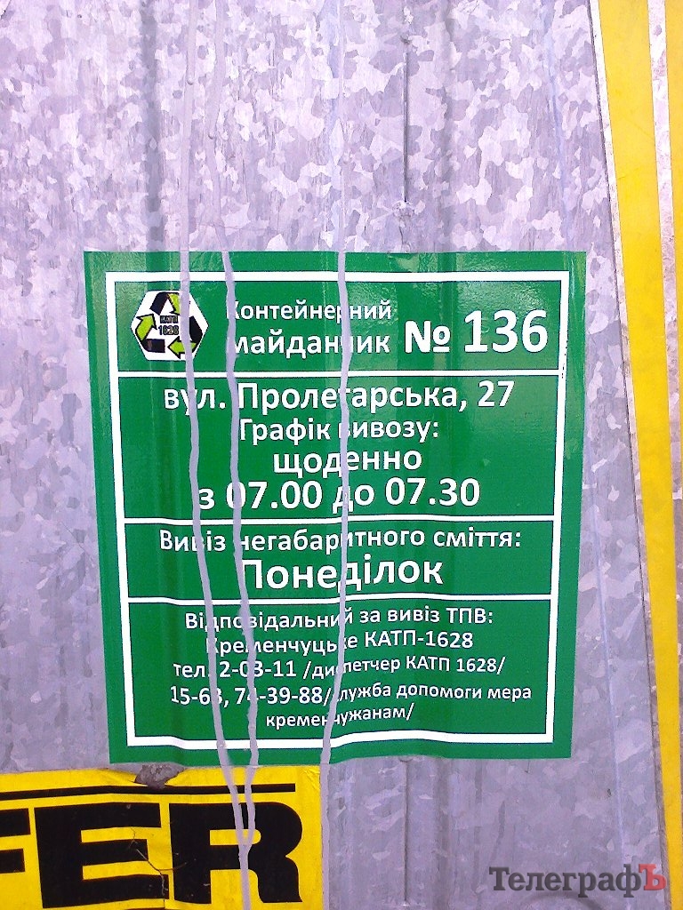– телефоны диспетчера коммунального предприятия КАТП-1628 (2-03-11), которое вывозит мусор и номер отдела оперативного контроля за обстановкой в городе (15-63, 74-39-88), который при мэре Виталии Малецком стали называть «Службой помощи мэра кременчужанам».