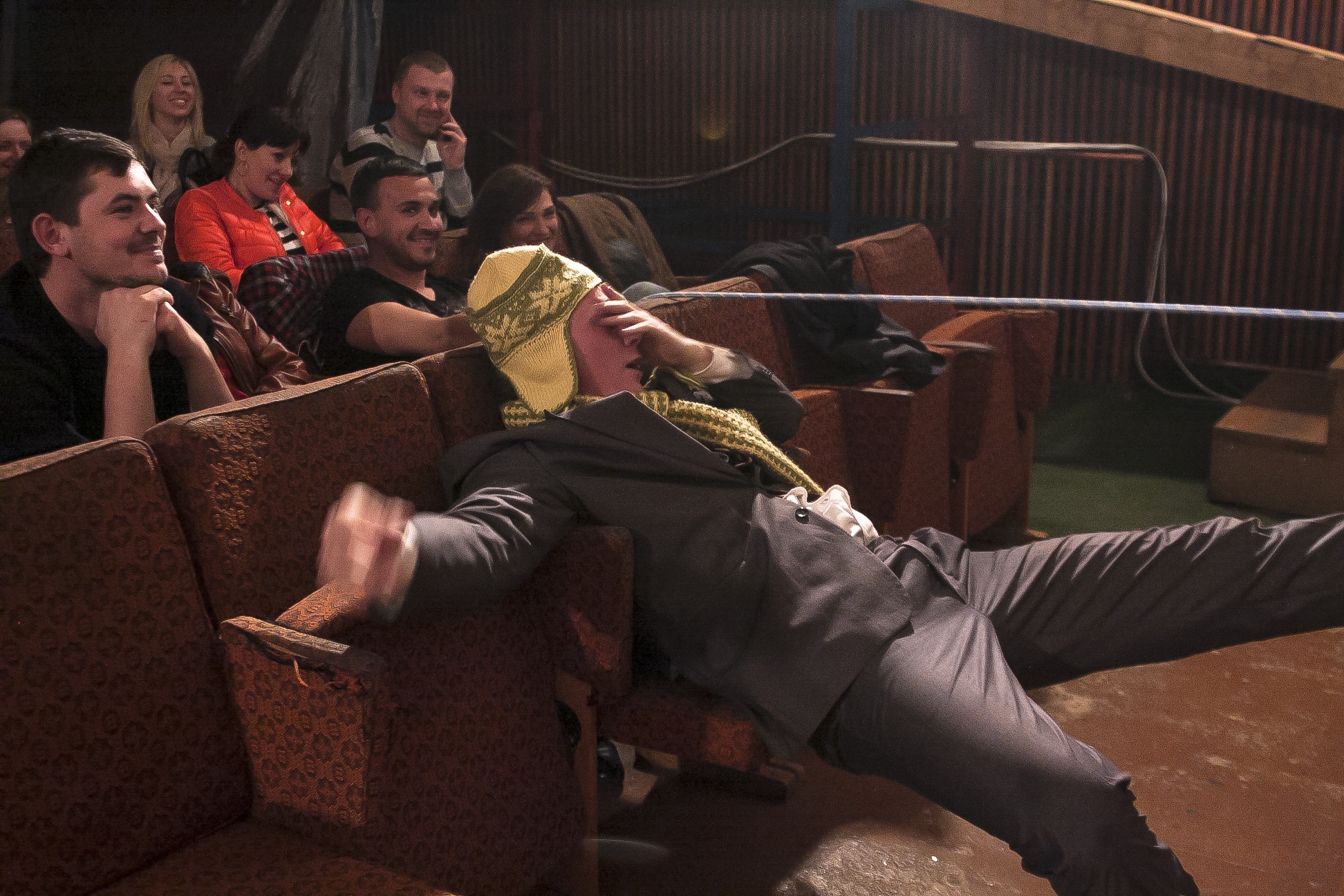 Вот с такого "неожиданного ЧП" начали спектакль "Вечер французской комедии" актрисы театра комедии "МО". Сам спектакль состоял из двух одноактных пьес: «Учитесь водить автомобиль заочно» по мотивам пьесы Клода Фортюно и "Альпинисты" по мотивам пьесы Габриэля Ару. А самое удивительное в этом спектакле то, что "Вечер французской комедии" вдруг оказывается… очень украинским.