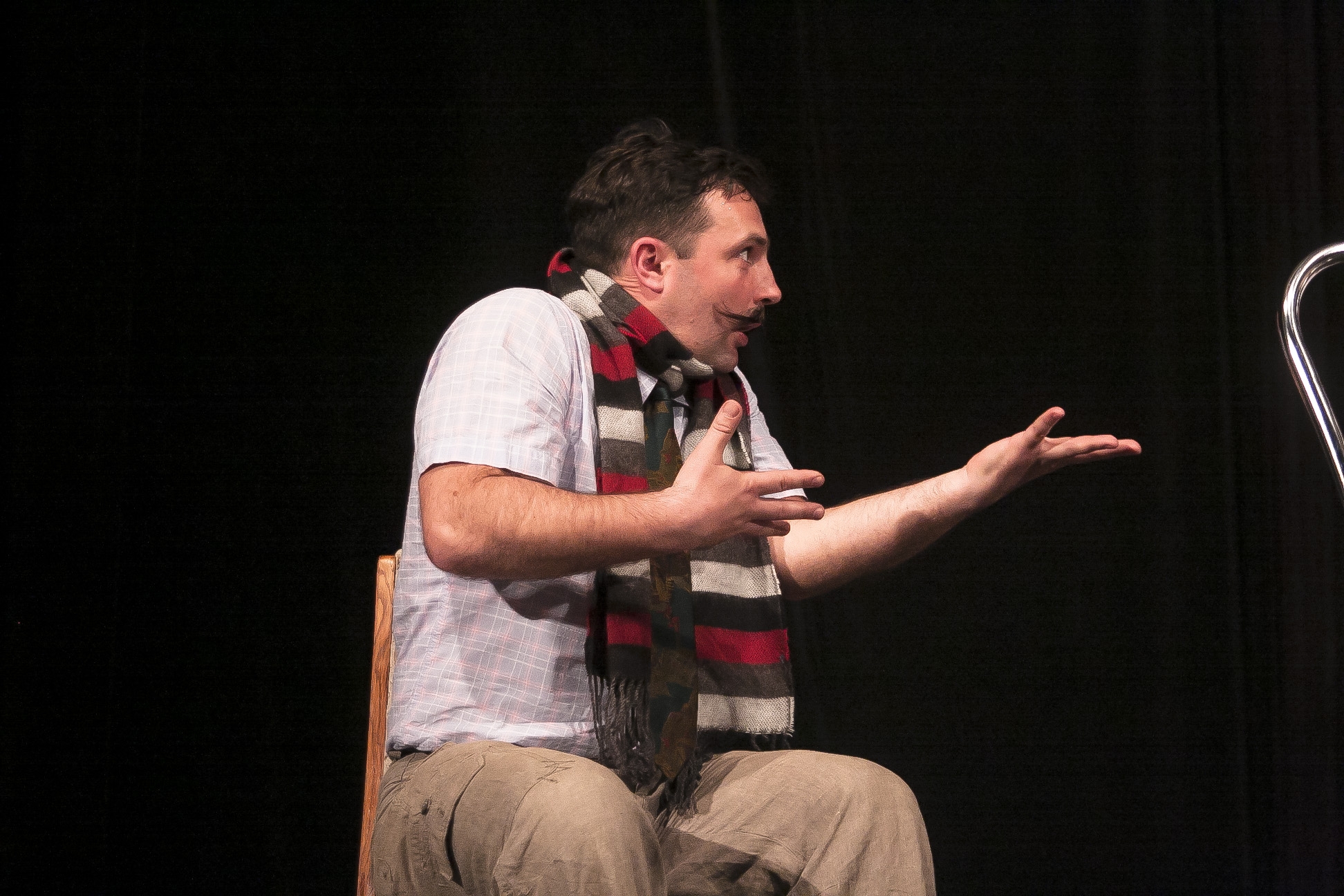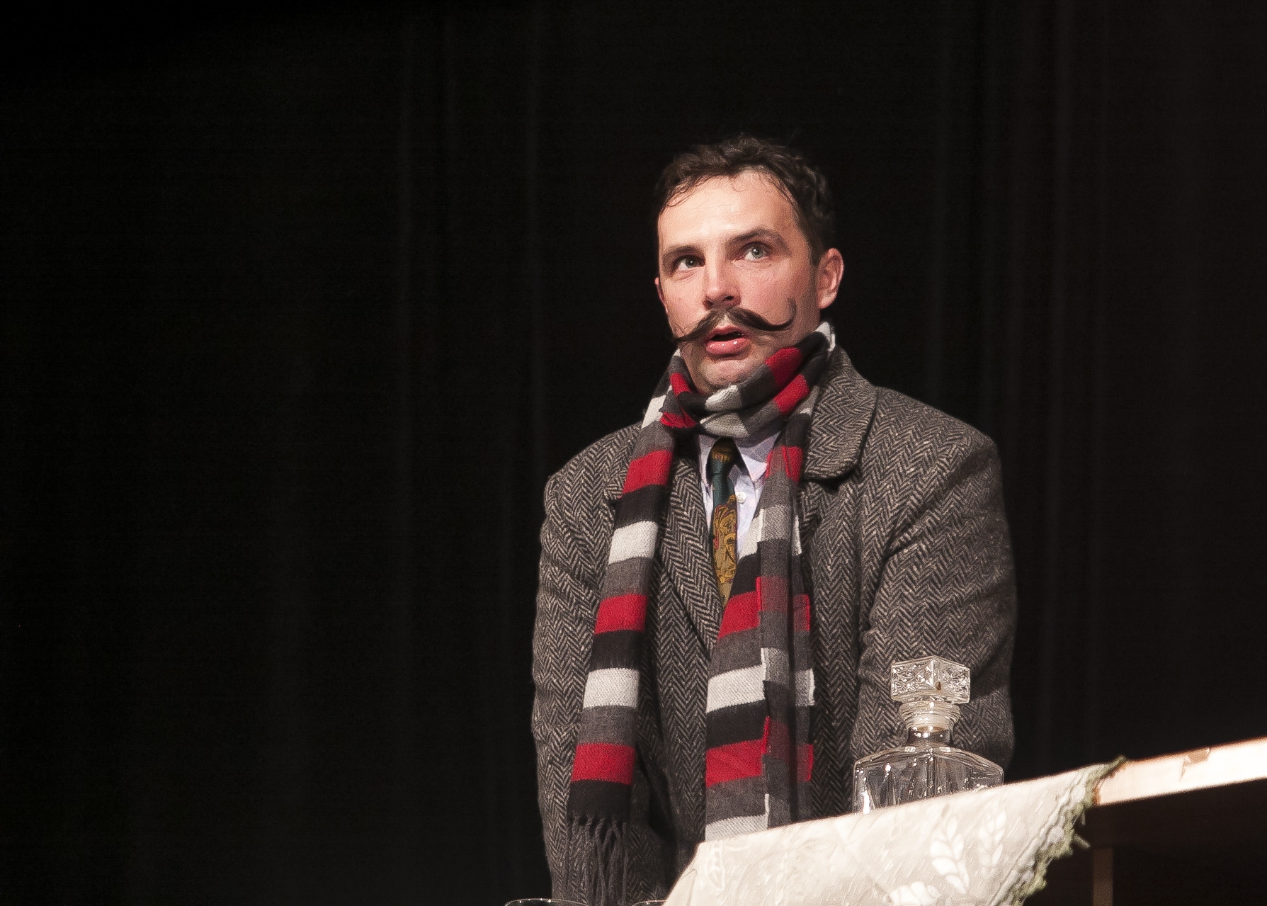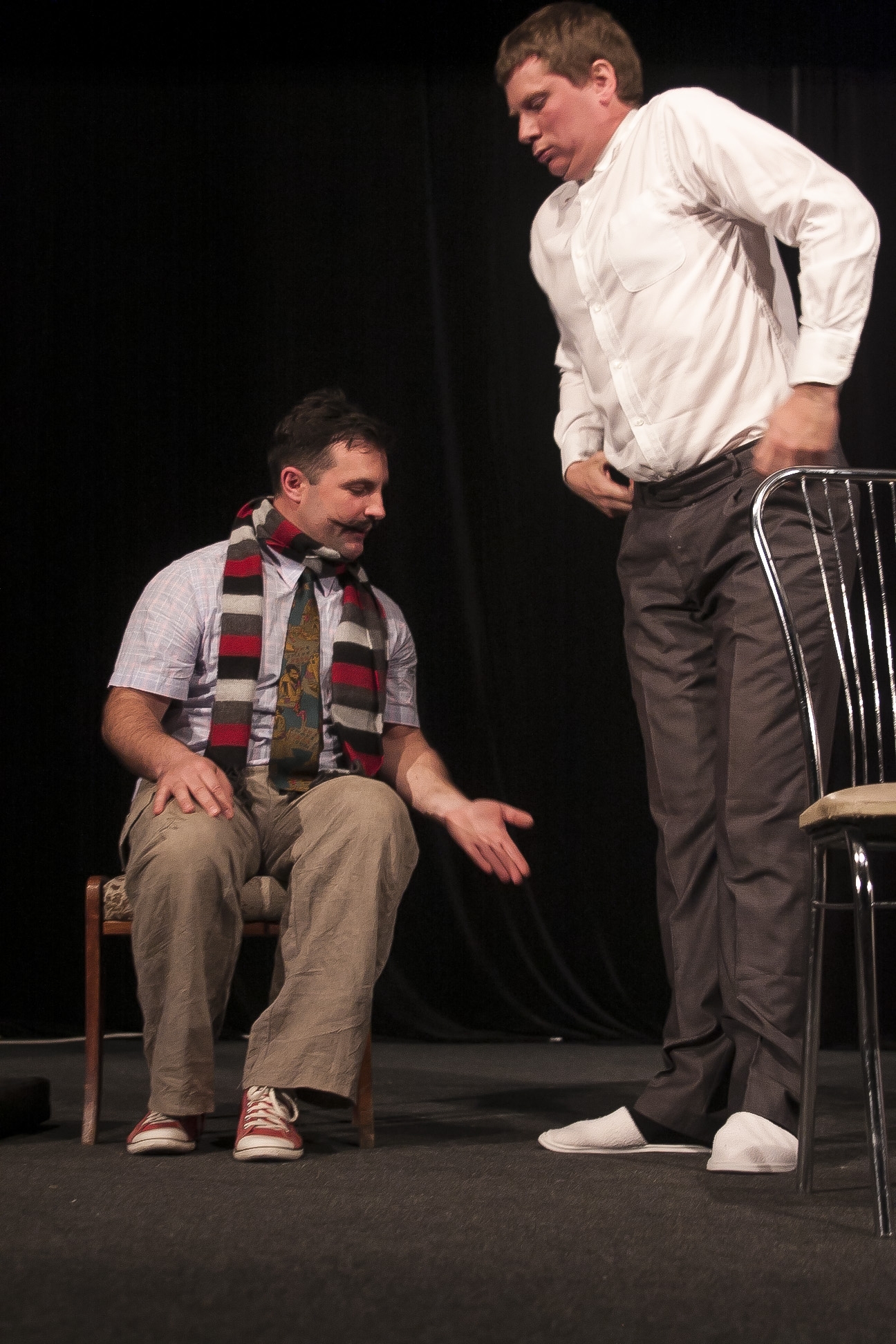 В постановке же Максима Воробьева спектакль начинается с риторического вопроса ученика:"Сцы или не сцы? Вот в чём вопрос!". Оказалось, что не "сцы", а сцепление - так будущий водитель готовился к здаче экзамена по вождению, ведь сейчас к нему должен прийти инструктор.