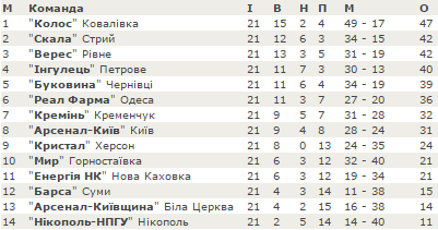Турнірна таблиця
