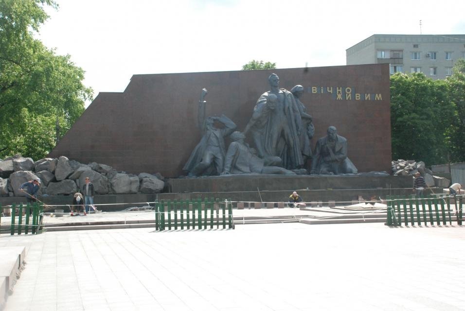 В Кременчуге 9 мая по традиции ветеранов Второй Мировой войны соберут около мемориала «Вечно живым», который достроить не успели. Сейчас бригады строителей подрядной организации завершают работы по укладке плиткой участков мемориального комплекса перед стелой. Об этом сообщает пресс-служба исполкома.