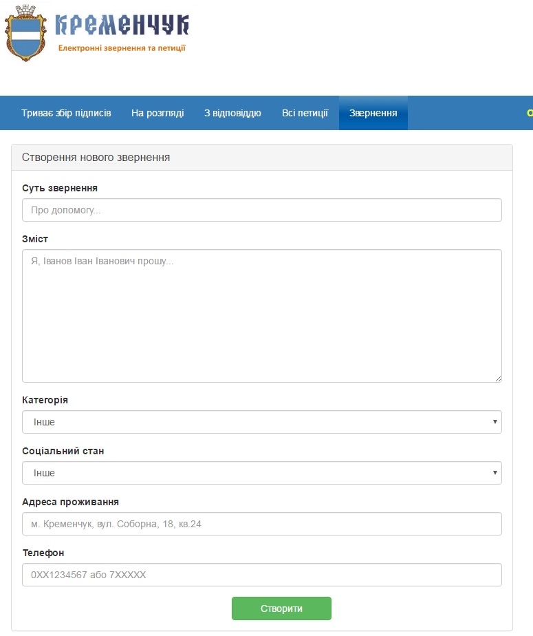 Кременчужане могут обратиться к руководству Кременчугского горсовета и в исполком с помощью электронного обращения.