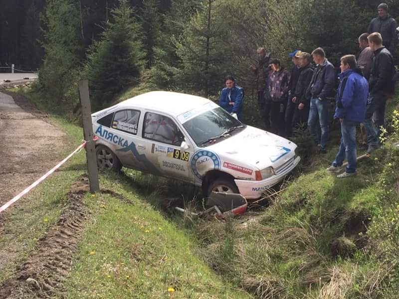 - В Кривополье за несколько дней до соревнования на участке серпантина положили новый асфальт. За день до соревнования начался дождь и не продолжался до утра воскресенья. На участке, где покрытие меняется с гравия на новый асфальт заднюю часть автомобиля сорвало в занос, машину удалось отловить, но ошибку допустил уже на выходе из заноса. В итоге - машину бросило в другую сторону. Дальше - канава на обочине.