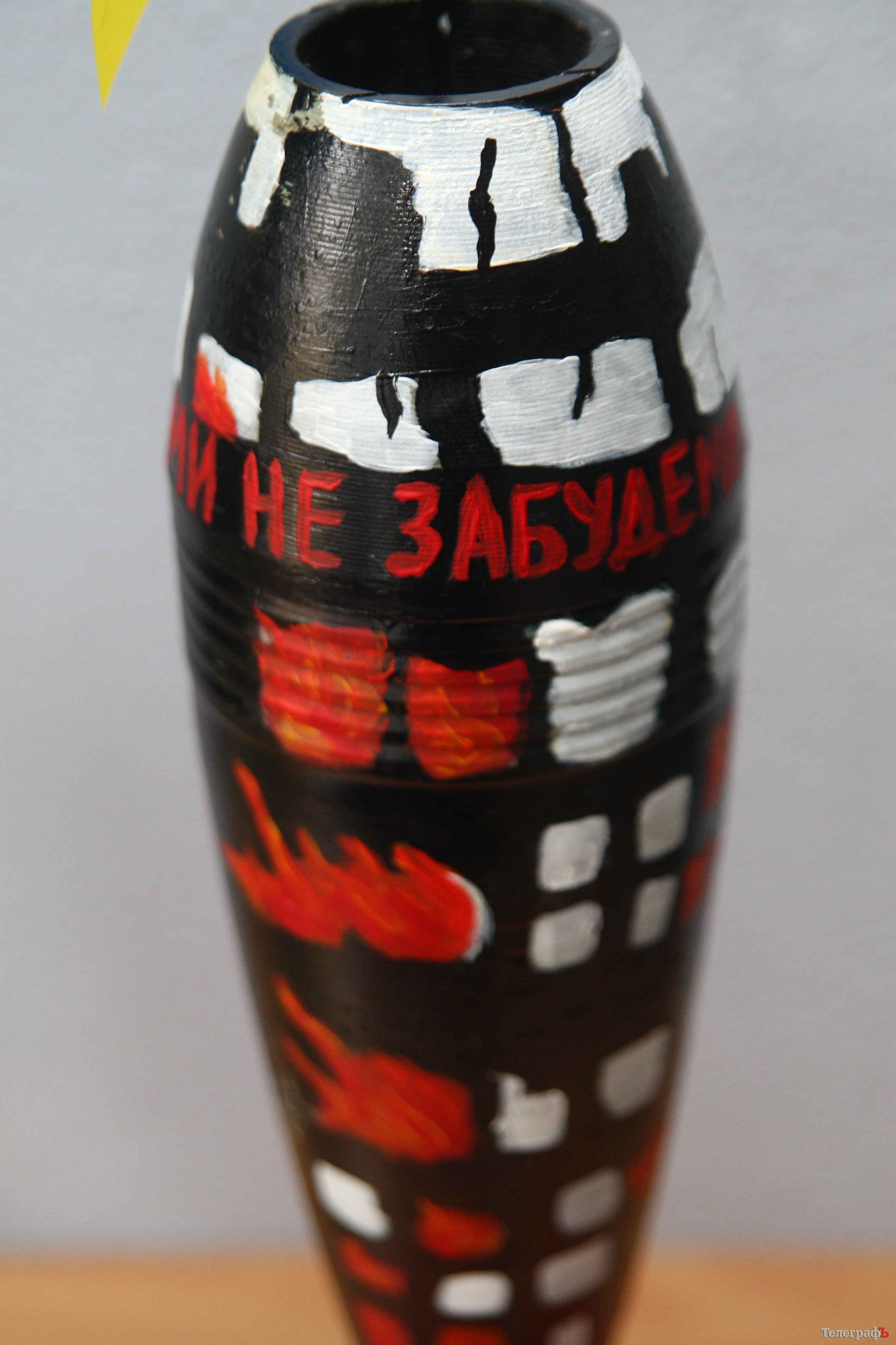 Кременчужанин 25 мая купил в приемной ИД «Приватная газета» обезвреженную мину 120-го калибра, которую мы выставляли на аукцион. Мину разрисовала художница в виде башни донецкого аэропорта, в которой несли небезопасную и тяжелую службу украинские военные, в том числе и кременчужане.