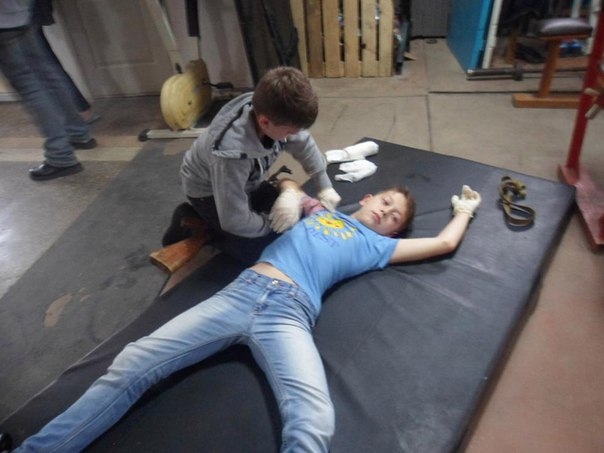 Після теоретичної частини курсанти продемонстрували навички, якими вони оволоділи. Хлопці та дівчата розбилися на дві групи. Після імітованого вибуху гранати, молодь обеззброювала поранених, надавала допомогу та евакуйовувала.