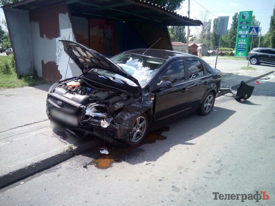 В Кременчуге на Первой Занасыпи после ДТП машину отбросило на остановку.