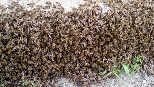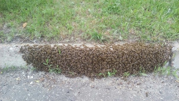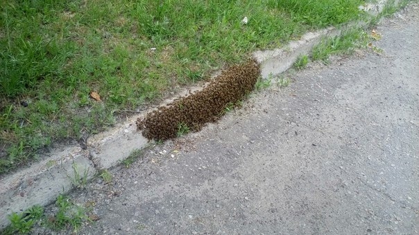 5 июня бордюр по улице Большой Набережной, 1 облепил рой пчёл. Фото прислал в «ТелеграфЪ» читатель Максим.