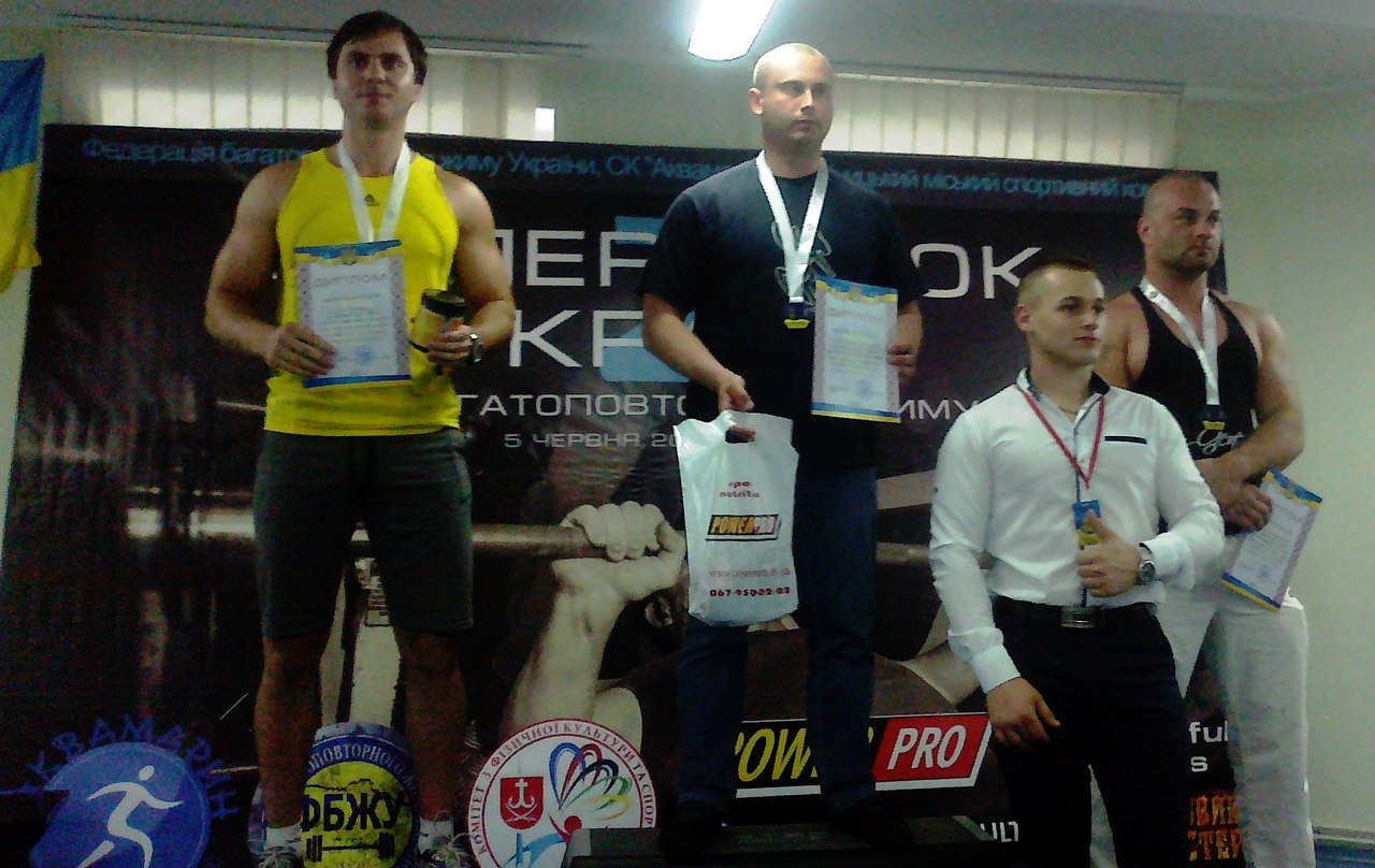 Друге місце у цій категорії зайняв спортсмен із Запоріжжя Кущ Є.В. Він підняв штангу 25 раз, третє місце зайняв Гуменюк В.В. підняв штангу 32 рази. Нагадаємо, визначення переможця відбувається за індексом атлетизму.