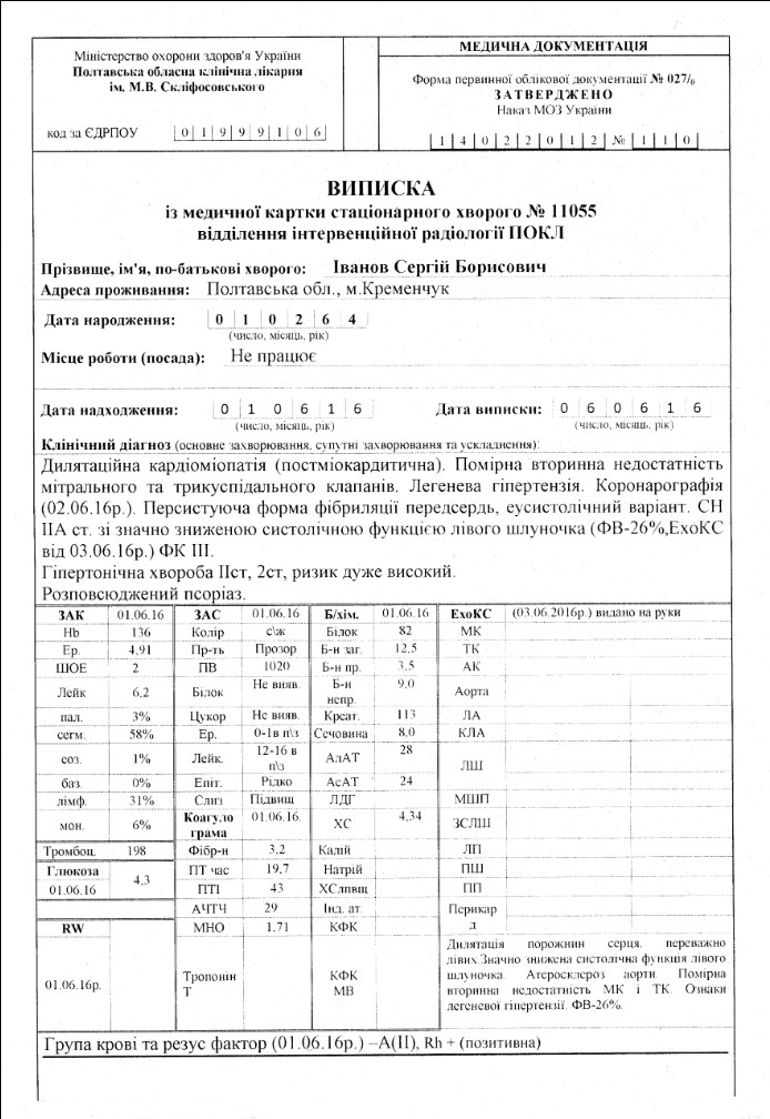 3-го червня минулого року, під час наступу сепаратистів під Мар'їнкою, 52-річний кременчужанин отримав поранення і контузію, а взимку - застудив легені, двічі за півтора місяця. Запалення легень дали ускладнення на серце — міокардит (запальне захворювання серцевого м'язу).