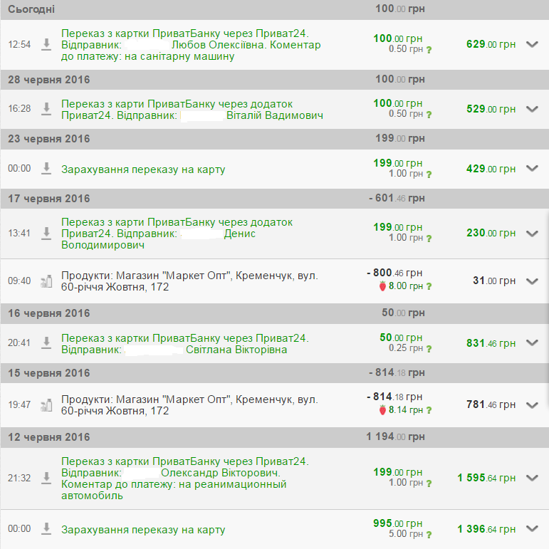 Протягом 17-30 червня на карту надійшло 299 грн.