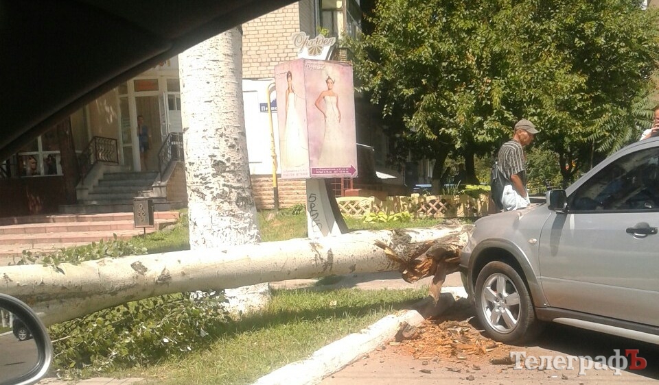 В Кременчуге машину привалило деревом. Об этом «Телеграфу» сообщил читатель. Это произошло сегодня, 5 июля днем на ул. Первомайской, напротив первого корпуса Кременчугского национального университета.