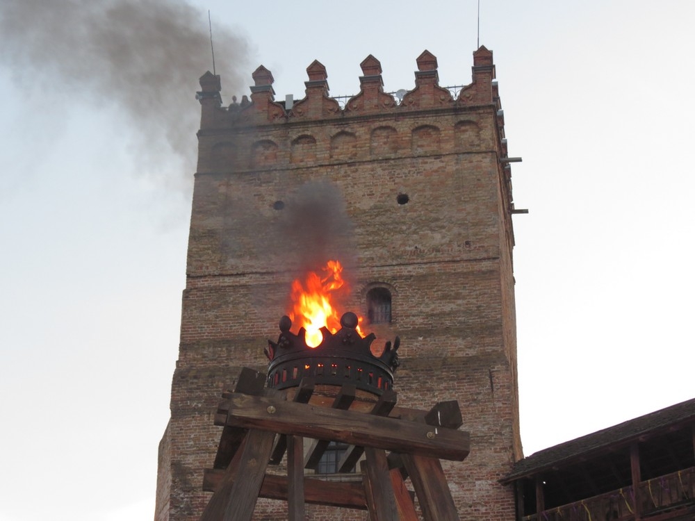 Актори мінського театру «Бармаглот», який працює в напрямку лазерного і неонового шоу, показали театралізоване «змагання» минулої та нової доби за володіння замком.