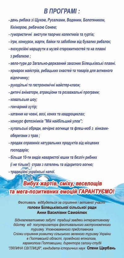 – день рибака зі Щукою, Русалками, Водяним, Болотяником, Кікіморою, рибачкою Сонею;