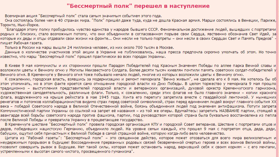 - Давайте, не чіпати ветеранів Великої вітчизняної війни, - додав голова кременчуцької ради ветеранів та учасників війни Віталій Сельцов.