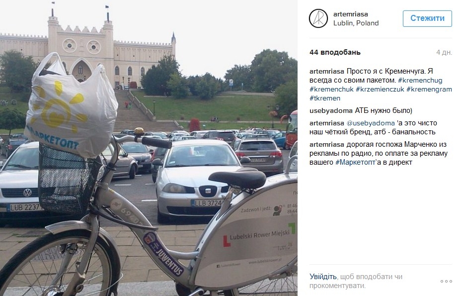 Наш ответ фотографии, на которой мужчина изображён на фоне Эйфелевой башни с пакетом «АТБ»...
