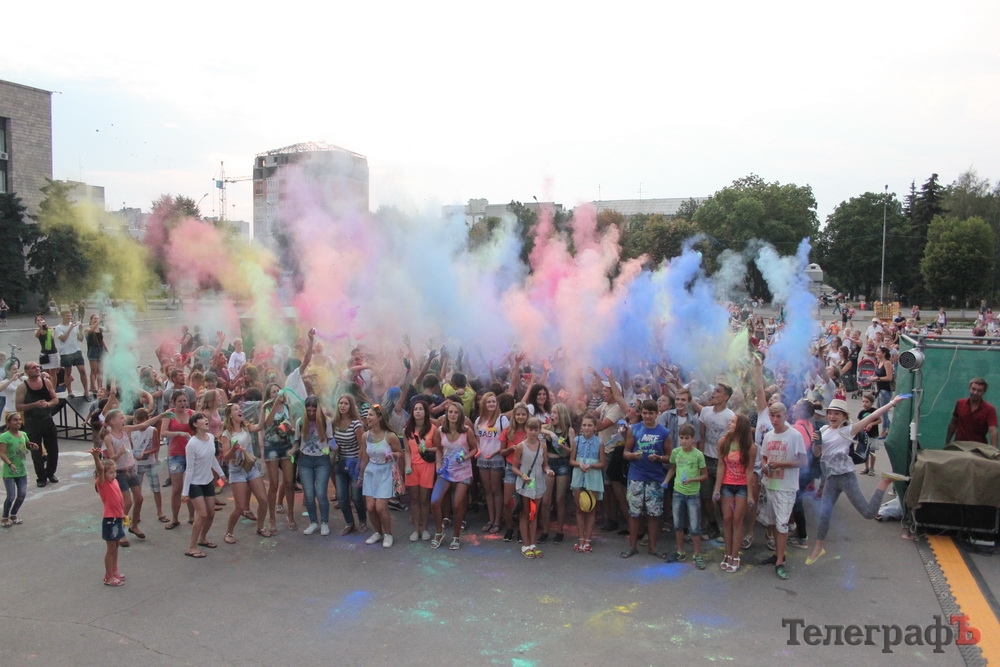 30 июля в Кременчуге на площади Независимости прошел масштабный фестиваль HoliDay Fest, во время которого участники бросались в друг друга яркими красками.