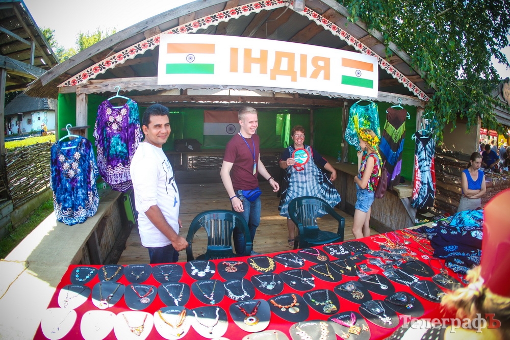 Експозиція з Індії продає сукні ручної роботи та жіночі прикраси, приблизно, по 300 гривень.
