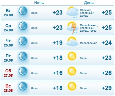 А rp5 — ливневый дождь в среду и четверг, 25 августа.