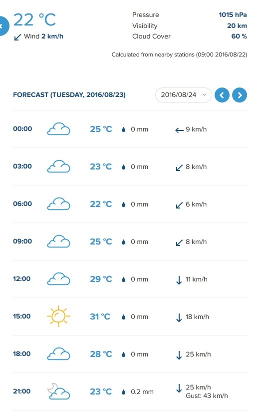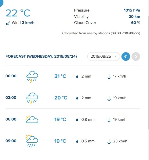 Sinoptik и Gismeteo в среду, 24 августа, прогнозируют даже грозу.