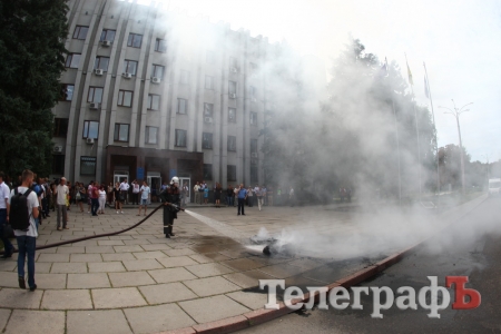 В 11.30 стало известно, что возле исполкома таки подожгли шины. Видно, как Константин Красовский обливает шины.