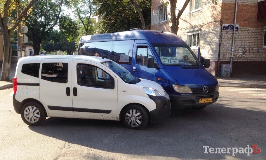 В Кременчуге на перекрёстке ул.Игоря Сердюка и академика Маслова (бывшая Советская) в ДТП попала маршрутка №13. Микроавтобус выезжал на перекрёсток с ул. Маслова (со стороны Соборной) и не пропустил легковой автомобиль Renault.
