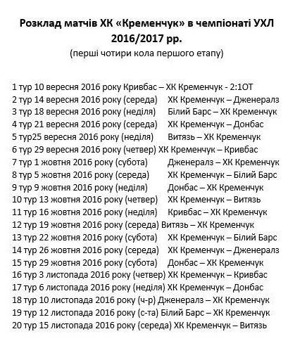 14 вересня хокейний клуб «Кременчук» програв перший домашній матч у регулярному чемпіонаті УХЛ. Команда Дмитра Підгурського зазнала поразки від столичного «Дженералз» – 1:3 (0:0, 1:1, 0:2).