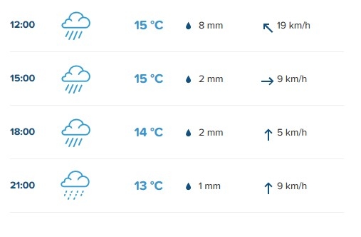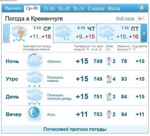 Gismeteo та rp5 пишуть про сильний дощ вдень і ясний вечір.
