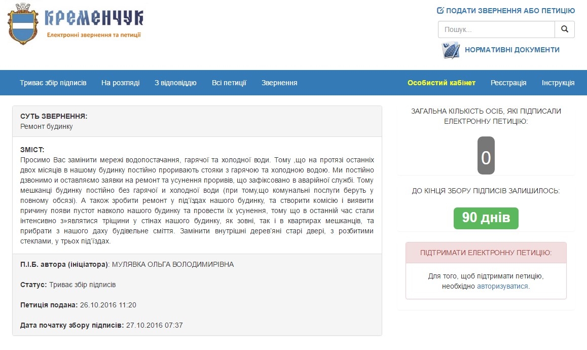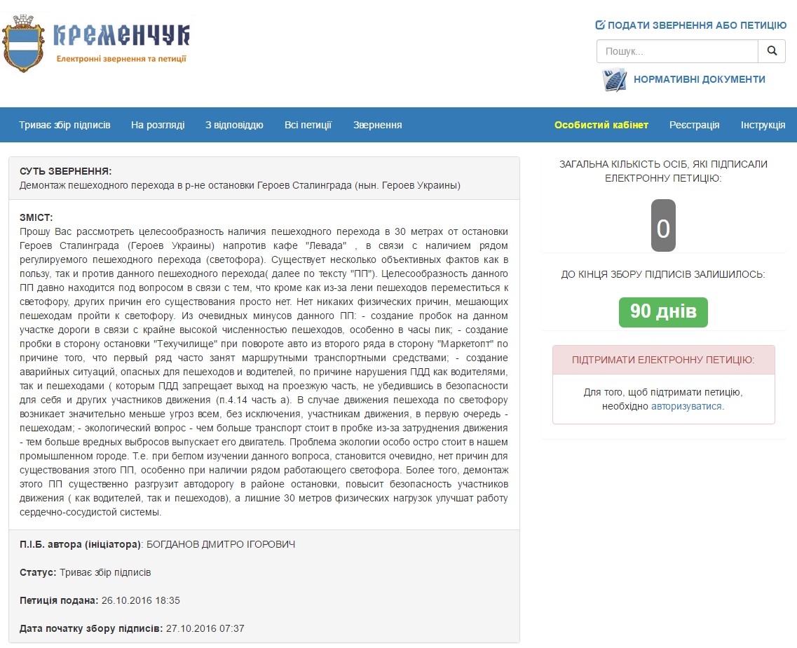 27 жовтня на сервісі електронних петицій меріїї з'явилось одразу три нових до мера Кременчука Віталія Малецького.