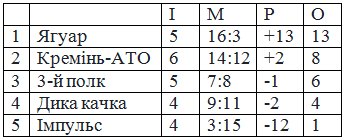 Турнірна таблиця