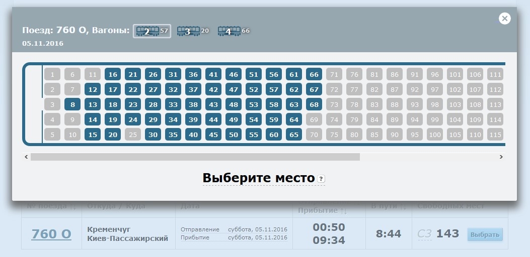 Так выглядит наполненность 14-17% вагонов глазами чиновников «Укрзалізниці» (синим выделены свободные места(!)