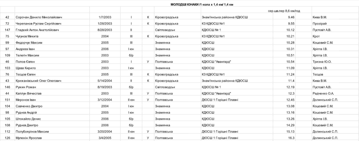 У категорії чоловіки кременчужанин Богдан Ряпосов завоював “срібло” змагань. Вихованцю КДЮСШ “Авангард” не вистачило долі секунди, щоб наздогнати суперника з Кропивницького.