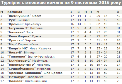 Лише один день одеська «Жемчужина» очолила турнірну таблицю. Після перемоги над «Нікополем-НПГУ» «Кремінь» повернувся на перше місце.