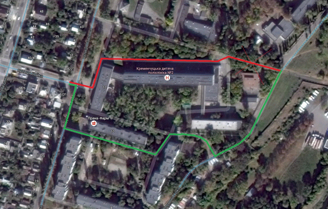 Так змінився маршрут кременчужан, які будуть йти з вул. Червона Гірка на вул.Павлова у нічний час.