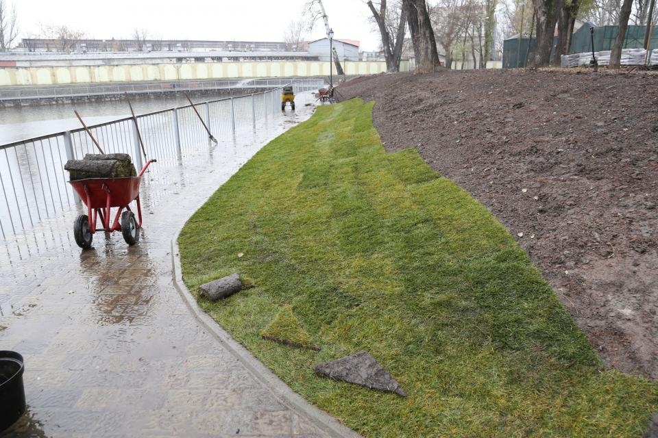 В этом году будет уложено 1 тысяча квадратных метров из предусмотренных реконструкцией 4 тысяч квадратных метров рулонного газона. По словам главного озеленителя коммунального предприятия «Благоустройство Кременчуга» Светланы Кулинич, такие работы лучше выполнять осенью, потому что трава хорошо приживается. Корень рулонного газона может расти в земле даже при температуре -5 градусов по Цельсию и крепче укореняется. И с приходом весны газон будет выглядеть достаточно привлекательно.