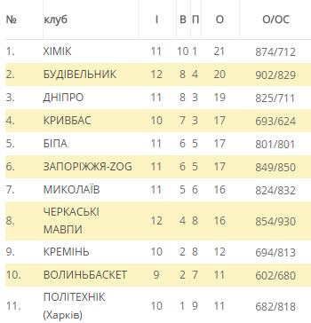 Турнірна таблиця