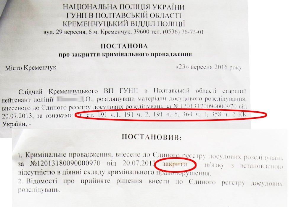 О том, что дело закрыто, случайно узнал кременчужанин Иван Данько, который проживает в пер. Зональном и имеет претензии у «Добробыту», который по договору обслуживает его дом. 25 сентября этого года он подал заявление в Кременчугскую местную прокуратуру на действия управляющей компании. На тот момент исполняющий обязанности руководителя прокуратуры, 5 октября (!) направил материалы Ивана Данько начальнику следственного отдела Кременчугского отдела полиции – для приобщения к материалам общего уголовного производства. После этого заявитель получил от полиции ответ, что 23 сентября этого года уголовное производство было закрыто.