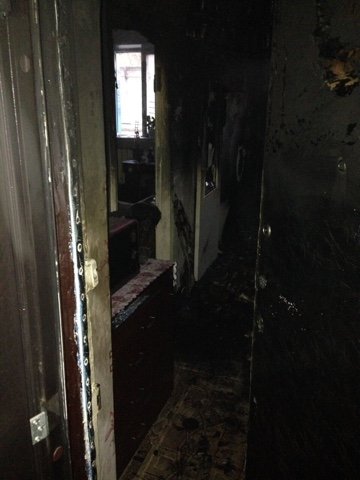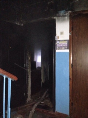 Повреждены: кухонная мебель, входные двери 3-х квартир, закопченные стены и потолок на площади 80 кв.м.