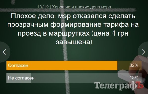 В конце октября редакция попросила читателей сайта «Кременчугского Телеграфа» поучаствовать в составлении рейтинга самых позитивных и негативных действий/бездействия городского головы Виталия Малецкого за первый год у власти. Ведь уже год, как у руля новая команда.