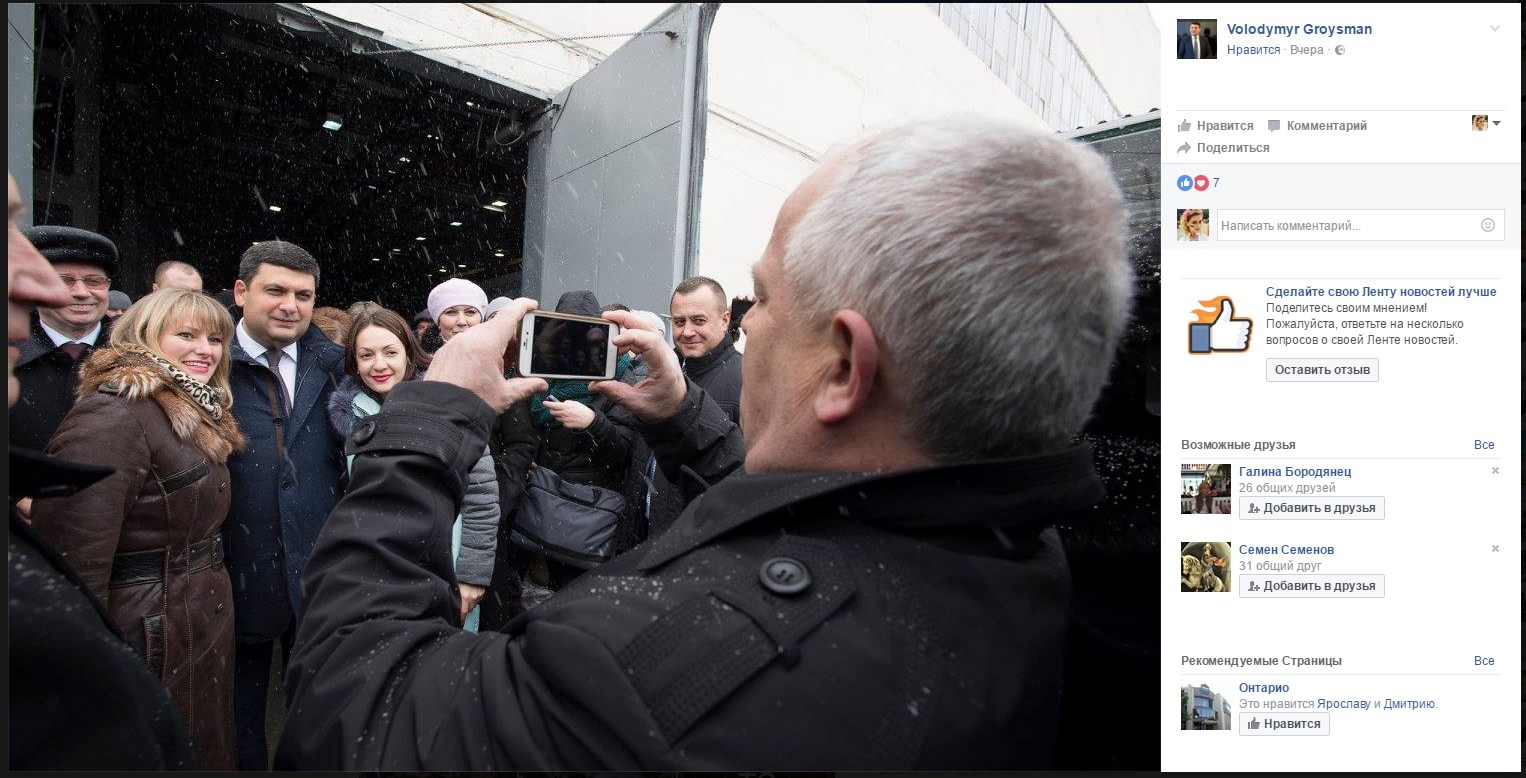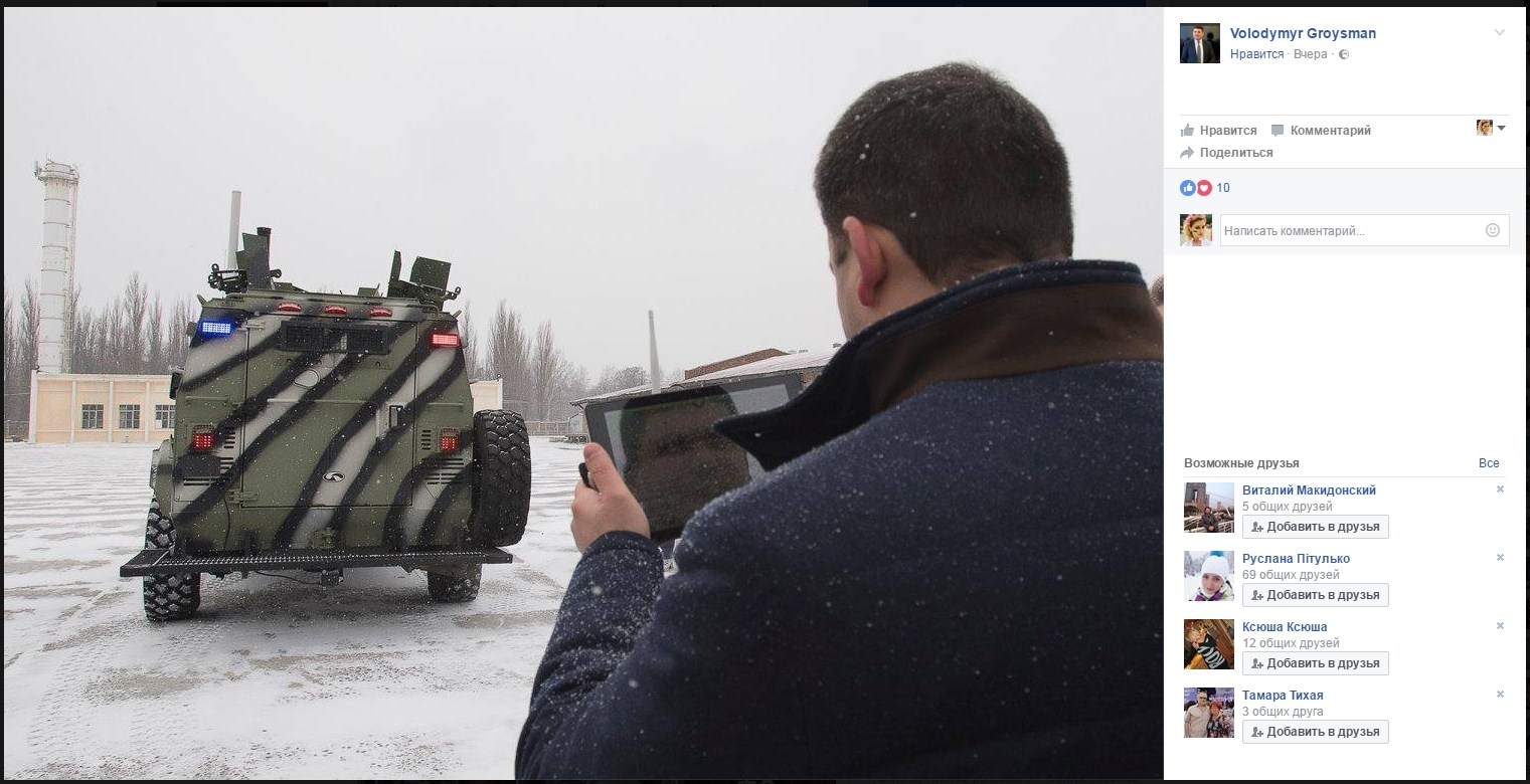 Премьер-министр Украины Владимир Гройсман на своей страничке в фейсбук написал о Кременчуге сразу 2 поста: о визите на КВСЗ и посещении КрАЗа. Оба сообщения подкреплены фотографиями, на которых Владимир Гройсман с серьезным лицом осматривает продукцию предприятий, потом «играется» с КрАЗовским беспилотником, и, как десерт, — фото с присутствующими дамами.